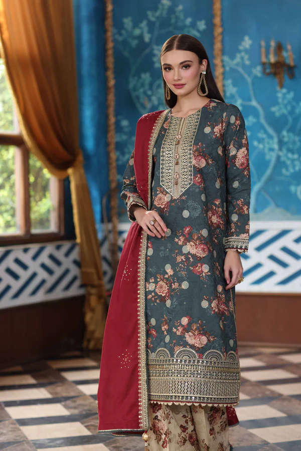 Designed for moments that matter with this digitally printed embroidered three-piece from the latest unstitched Winter Collection.