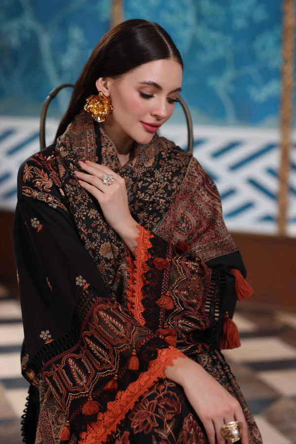 Modern silhouettes, cultural roots with this embroidered three-piece from the latest unstitched Winter Collection.