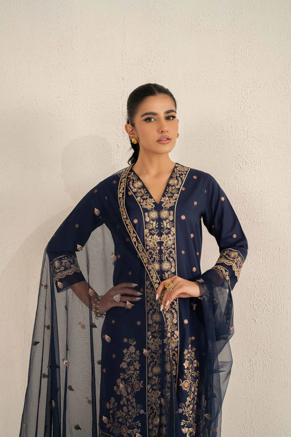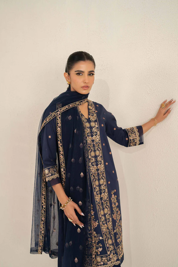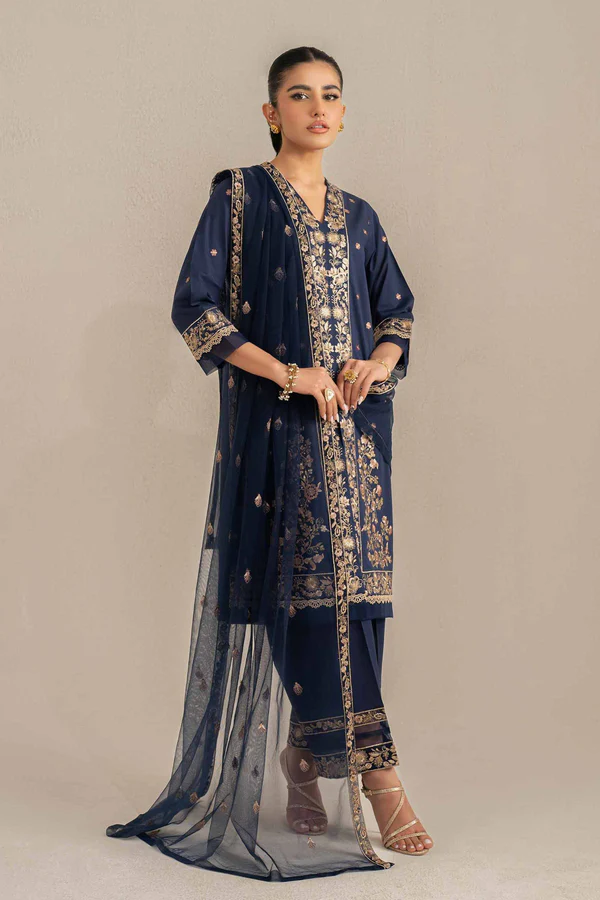 Embrace effortless elegance with this embroidered three-piece from the latest onora ready to stitch summer collection.